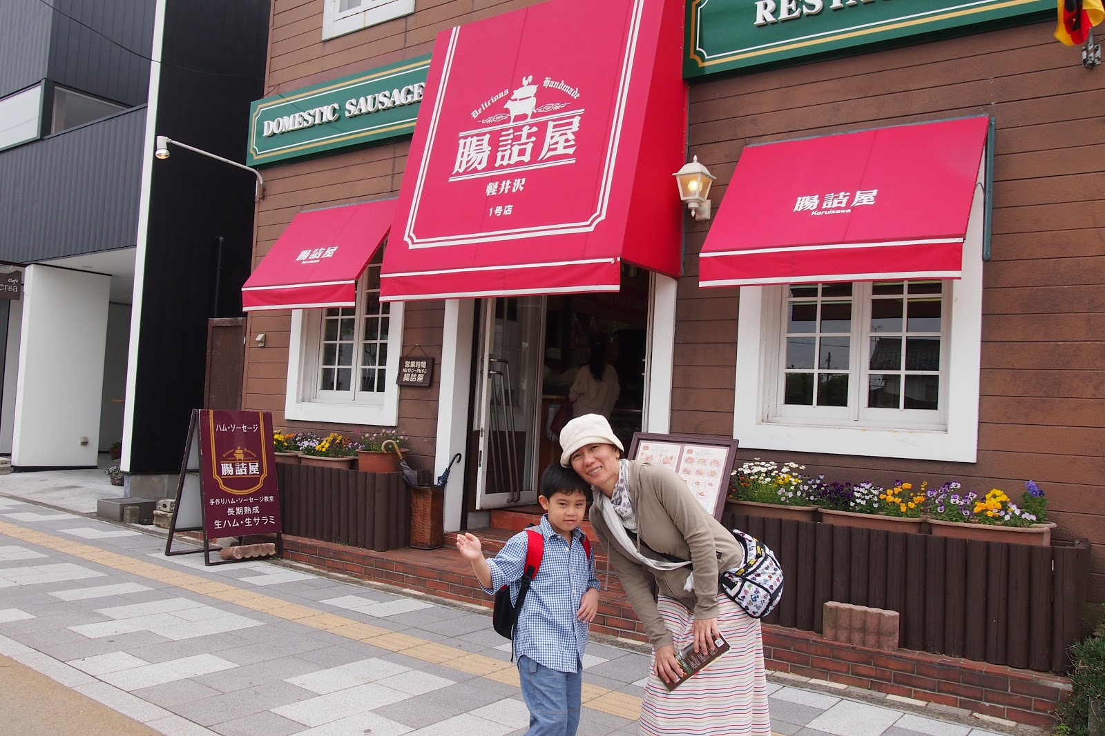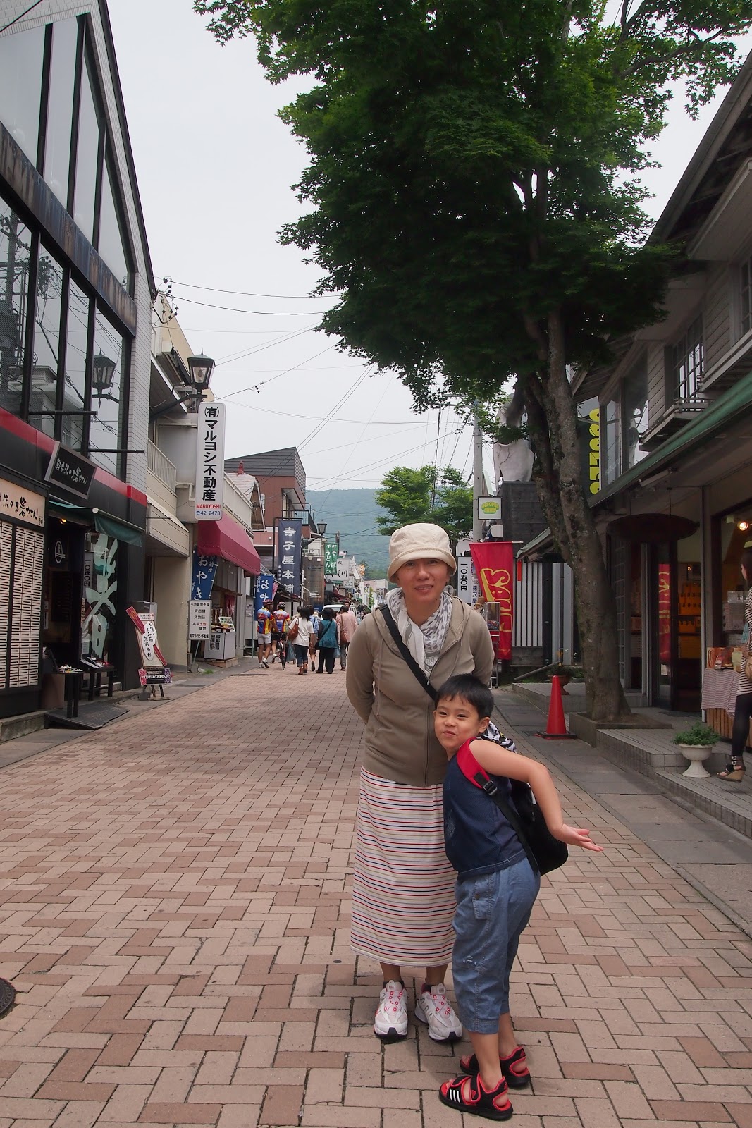 果然觀光區的餐點比較貴,好像沒吃到多少そば,就花了¥3000。不過,沿路很多賣這裡特產果醬和蜂蜜的專賣店,都有提供試吃,小傢伙後來東吃西吃,吃了一堆。他最喜歡的是試吃果醬所提供的小蘇打餅乾,大概吃了十來個吧!太可怕了!不過店家也不怕你吃,都不會故意來「關心」是否需要提供協助。倒是我們覺得給人家吃的太不好意思,也就順勢買了幾罐!