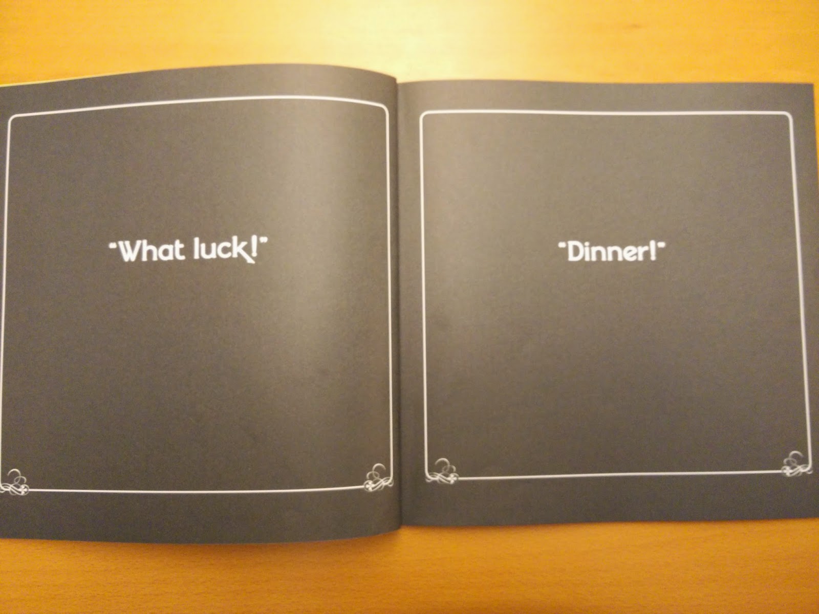 因為只有寥寥幾個單字和句子,有一點英文基礎的小孩,都能很快跟著大人朗朗上口。小朋友聽媽媽唸過幾遍,就可以跟上。然後,要求扮演小鵝們的角色,成天抓到機會就大聲喊著「That is really not a good idea!」。我們母子倆除了重複角色互換的玩了幾次角色扮演,也到Youtube上查看相關影片,想聽聽別人說故事的方法,結果找到一部由一家人搞笑演出的真人版本,實在太好笑了!搞笑指數破表!